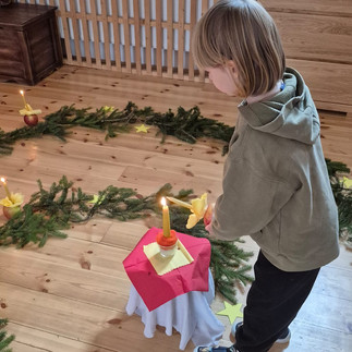 Na początku grudnia wzięliśmy udział w niezwykłej waldorfskiej tradycji spirali adwentowej. Przy śpiewie pozostałych, po kolei każde dziecko spacerowało między pachnącymi gałązkami jodły, odpalało świecę umieszczoną w jabłuszku i układało ją na spirali. Niosąc światło w naszych sercach przygotowujemy się do świąt Bożego Narodzenia.